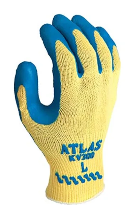 Atlus Cut Resistant Level 3 Glove, blue rubber coated palm & fingers, Kevlar String Knit Liner, durable natural rubber provides high flexibility, Sizes: S-XL