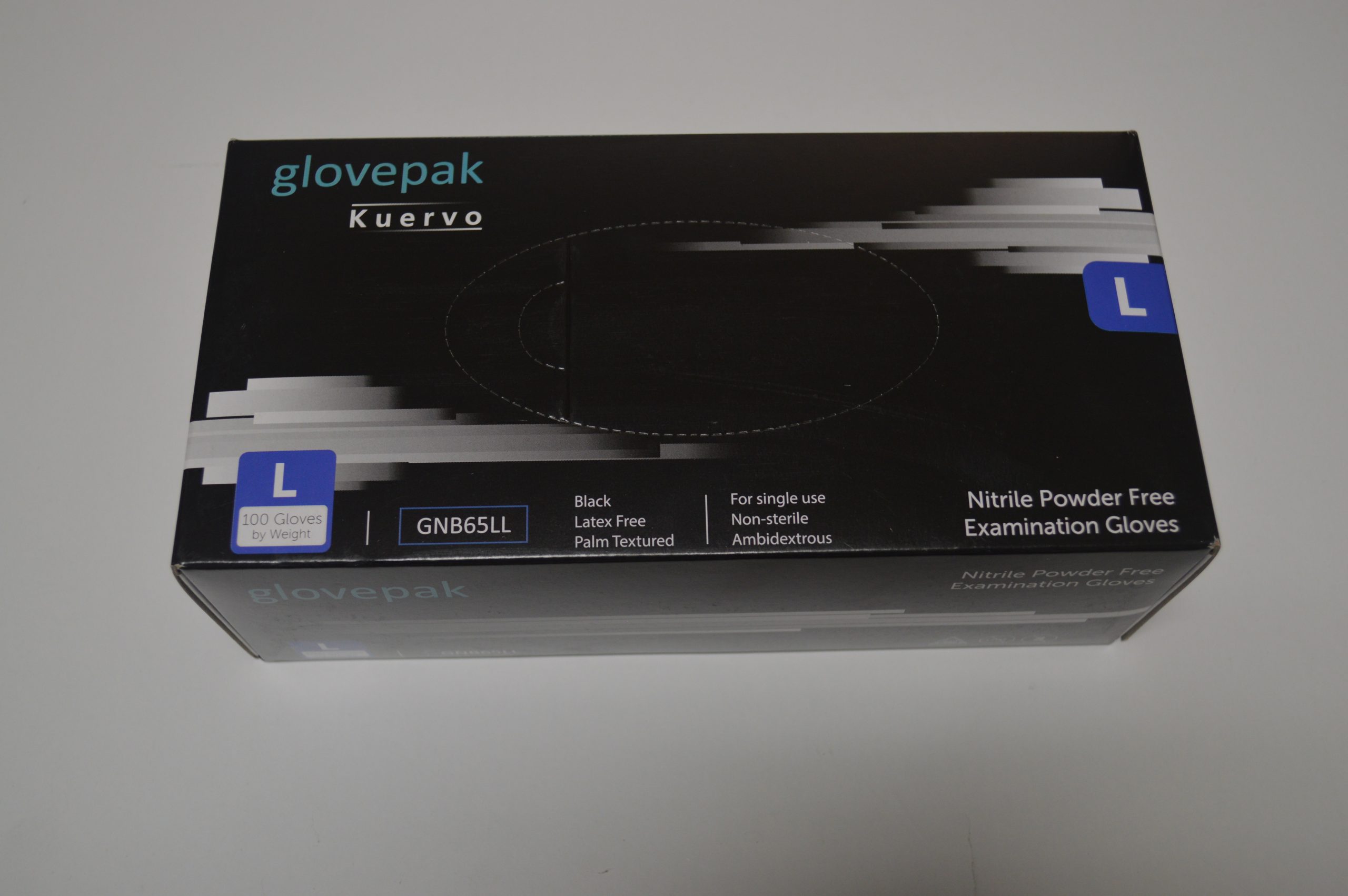 Black nitrile gloves, exam grade, 6 mil, powder-free, ambidextrous, 100 gloves per dispenser. Available in sizes Small – XX-Large. 10/Boxes/Case