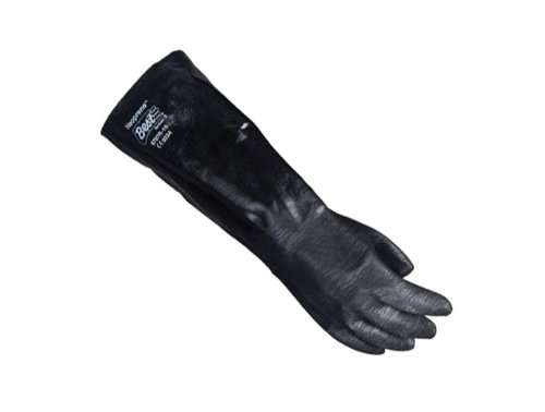 Forged with rugged neoprene, cotton lining and a rough grip, SHOWA 6797R is designed for arm-length comfort in hot or cold environments while providing protection against acids and caustics.